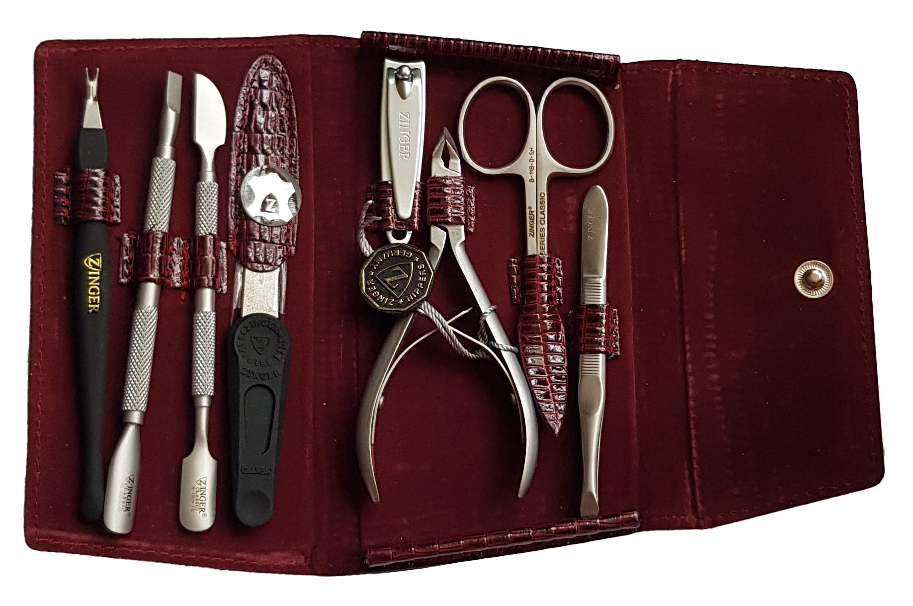 Маникюрный набор Zinger MS-1403-1 SM, 8 предметовZinger Маникюрный набор на кнопке 8 предметов (MS-1403S), бордовый. Футляр изготовлен из натуральной кожи. Внутренняя отделка футляра - мягкий велюр, имитация замши, цветом в тон коже футляра. Подарочная коробка с логотипом, внутри отделана бархатной бумагой. В набор входят 8 предметов: кусачки для кутикулы, ножницы для кутикулы, книпсер, пинцет скошенный, пилка алмазная, 2 пушера, триммер.Производитель: Zinger Цвет * Недоступно Недоступно Недоступно Недоступно Недоступно Недоступно 3 119,00 ₽ Количество: В корзину wishlist.addcustomwishlist OKДобавить в список пожеланийСравнитьСообщить другуИнструменты изготовлены из высококачественной стали марки AISI 420 (40Х13). Технология закалки позволяет сочетать необходимую упругость и высокую твёрдость металла. Вся серия заточена вручную, по стандартам мастеров маникюра: с дополнительной обработкой лезвий и полировкой кончиков. Категория заточки - 3. Заточки хватает на 3-4 года активного домашнего использования или 1 год проф. использования. Цвет покрытия металла – серебристый.ХарактеристикиИмя атрибутаЗначение атрибутаКоличество в упаковке8 шт.ПроизводствоИталия